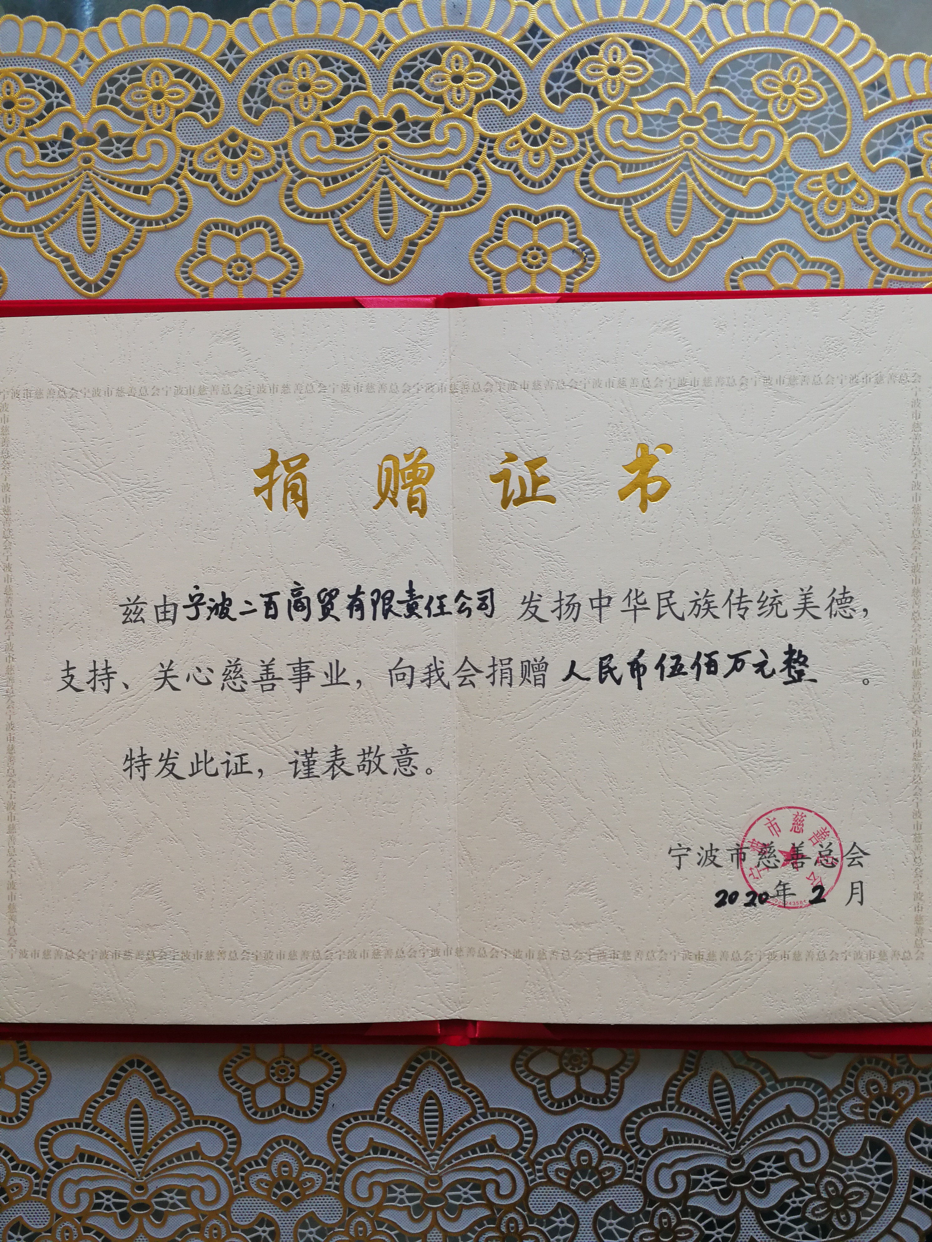 繼“寧波中百”于2月2號(hào)向海曙區(qū)紅十字會(huì)捐贈(zèng)了500萬(wàn)元用于疫情防控的善款后,“寧波中百”的全資子公司“寧波二百”,也于2月10號(hào)向?qū)幉ㄊ写壬瓶倳?huì)捐贈(zèng)了同樣用于抗擊疫情的善款500萬(wàn)元。該部分善款將用于抗疫醫(yī)療設(shè)備、物資的采購(gòu)和一線抗疫工作物資的保障等方面。